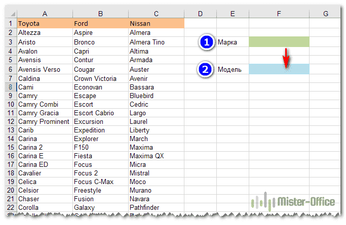 Как сделать зависимый выпадающий список в Excel?