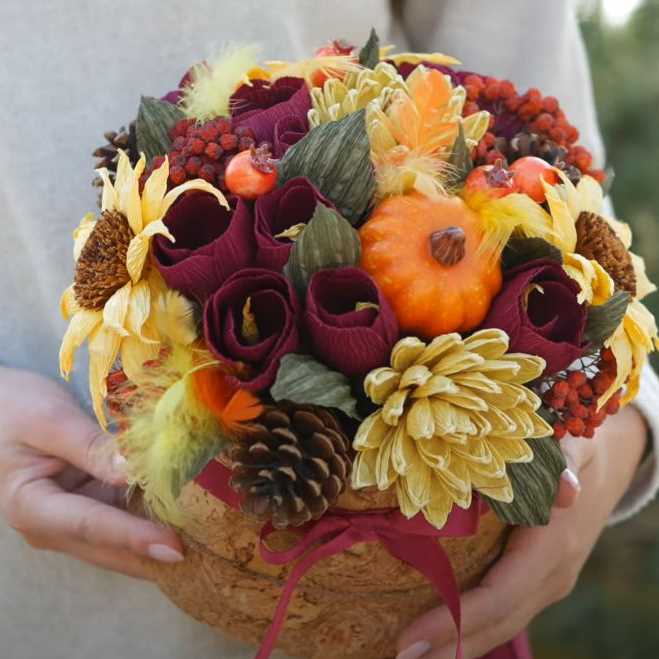 Научитесь создавать осенний букет в корзине своими руками, чтобы порадовать учителей и одноклассников в школе.