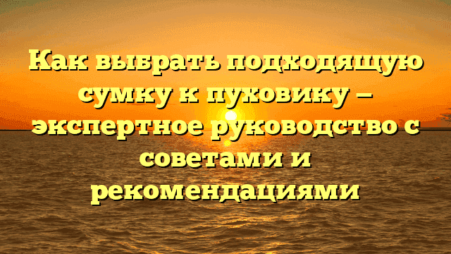 Как выбрать подходящую сумку к пуховику - экспертное руководство с советами и рекомендациями